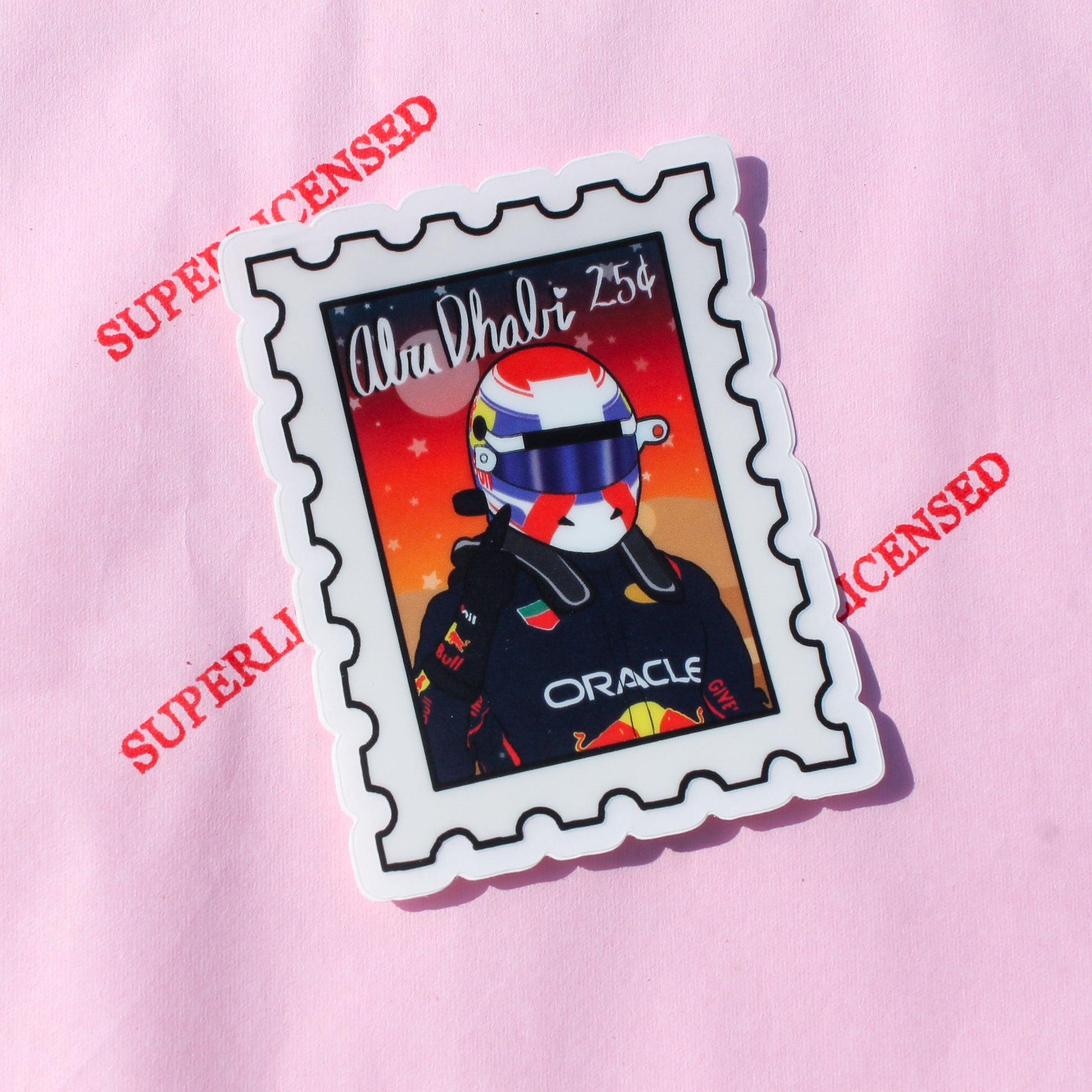 Celebrate Max’s fantastic win in Abu Dhabi with this super cute winner stamp sticker! This sticker comes in two sizes standard which is 2.4” x 3.0” inches or mini at 1.6” x 2.0”. This is a waterproof vinyl sticker.