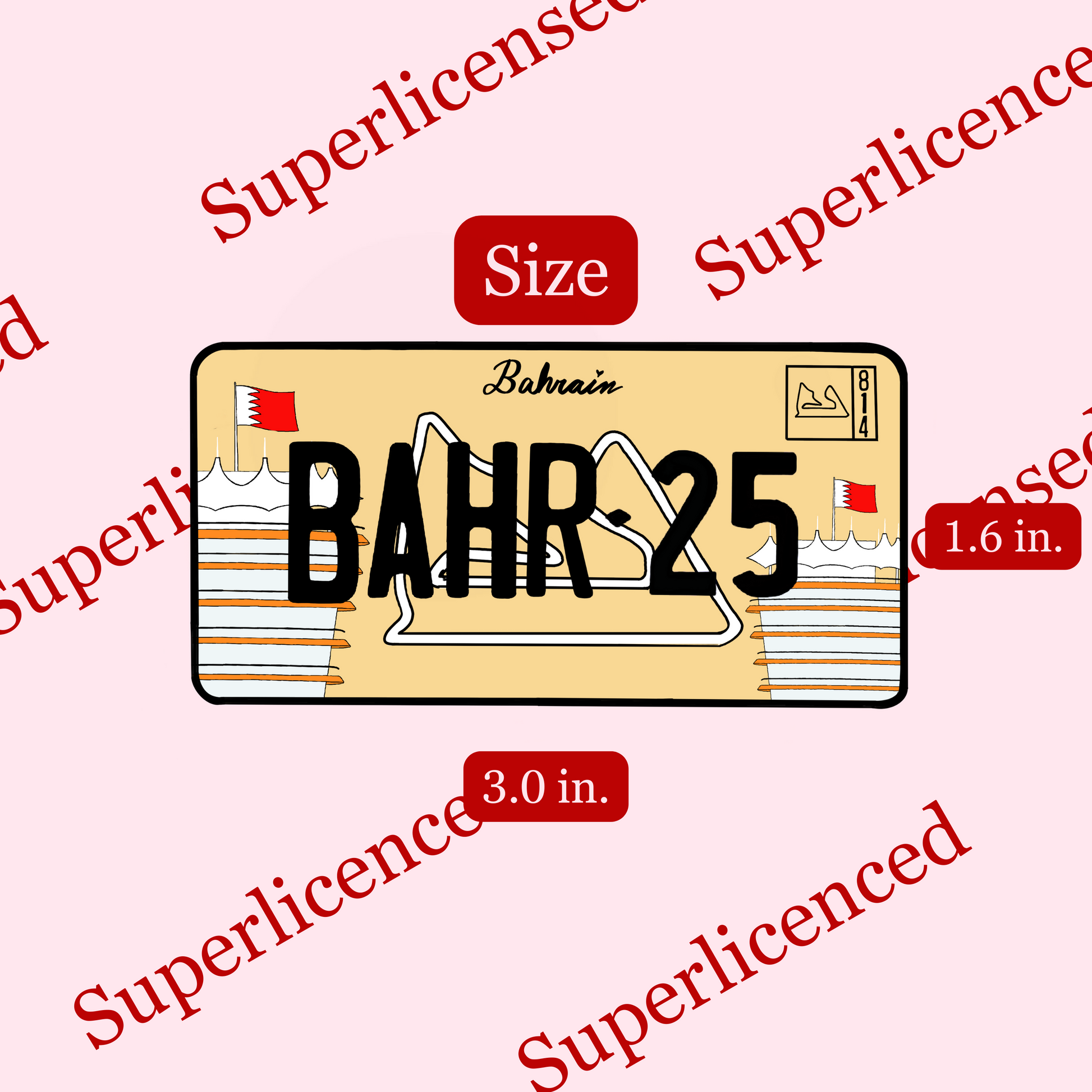This license plate sticker is so cute to put on kindles, water bottles, whatever your heart desires. It matches the 2025 Winner stamp and features the track in the corner with the McLaren boys numbers in the corner since Bahrain is considered a home GP. It is a waterproof vinyl sticker that is 3.0" x 1.6" inches in size.