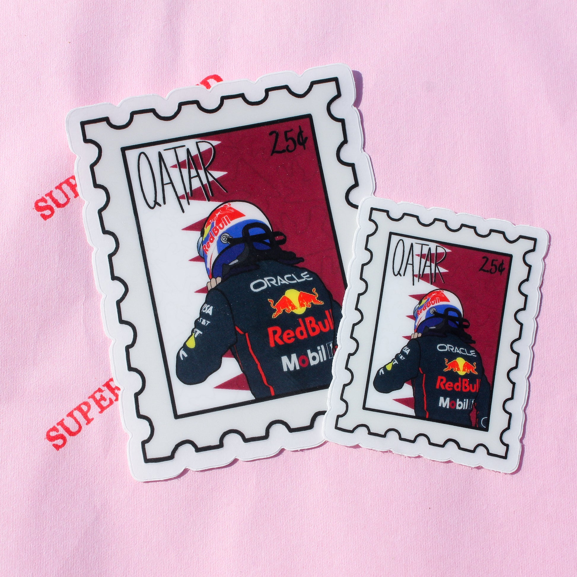 Celebrate Max’s fantastic win in Qatar with this super cute winner stamp sticker! This sticker comes in two sizes standard which is 2.4” x 3.0” inches or mini at 1.6” x 2.0”. This is a waterproof vinyl sticker.