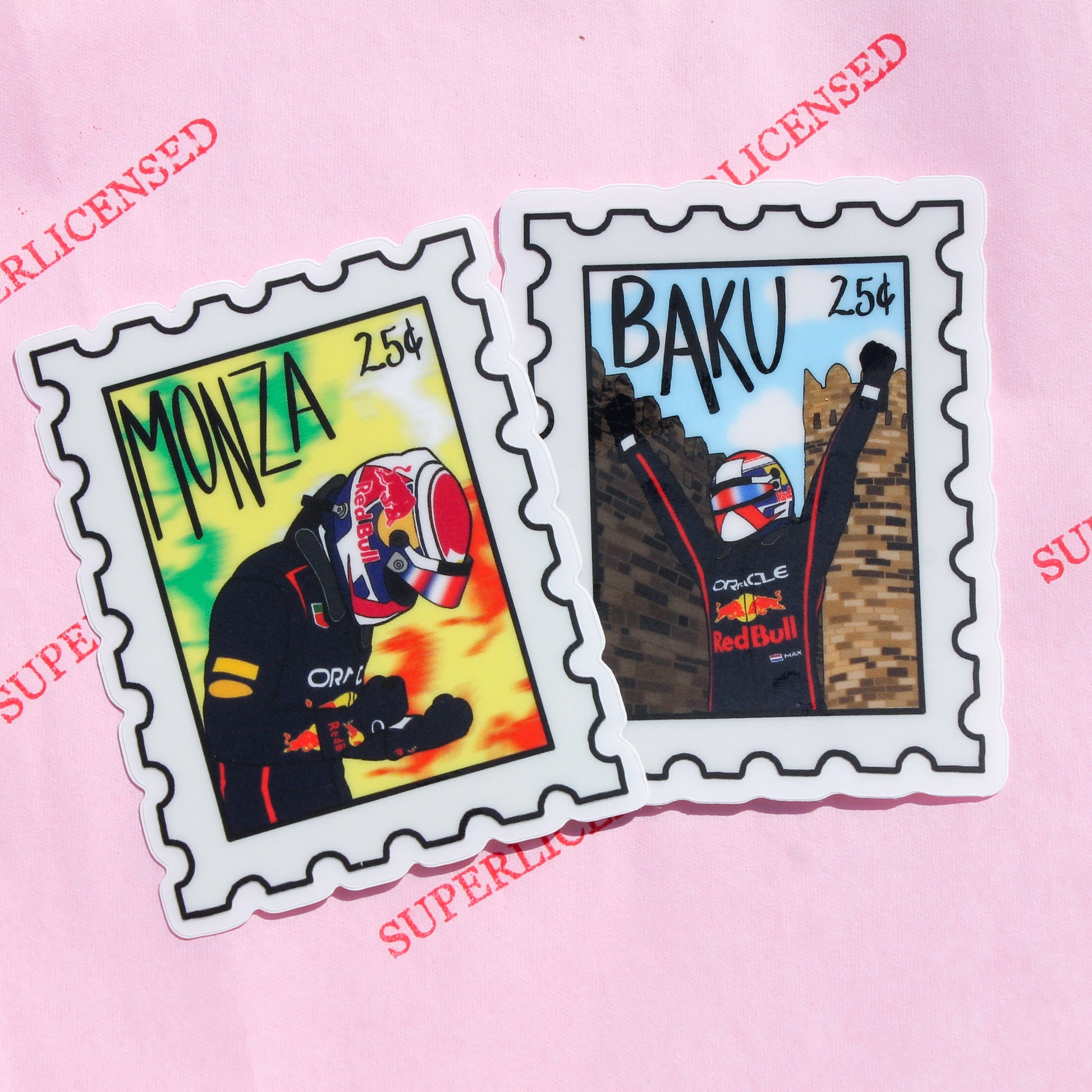 Preorder will ship October 2. Save and buy all the September stamps! This includes both Max wins from Monza and Baku. Both are clear waterproof vinyl stickers around 2.4”x3.0” in size or mini 2.0 x 1.6.